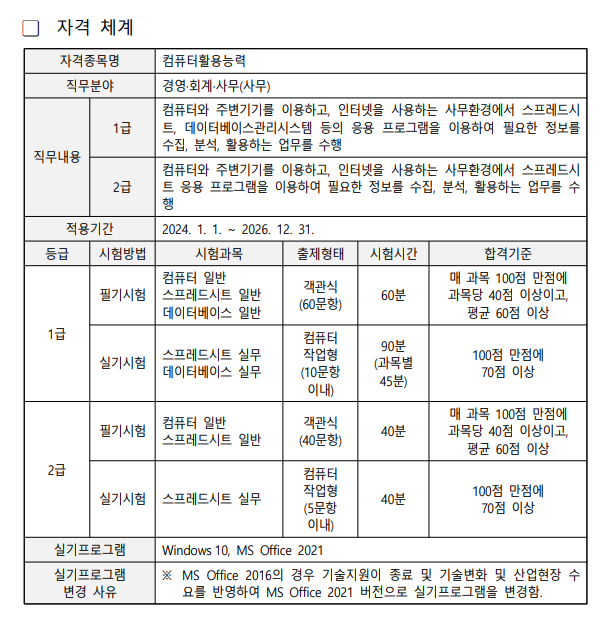 | 1 | 컴퓨터활용능력 1급 | 사무, 행정 | 공공기관 필수 수준 |